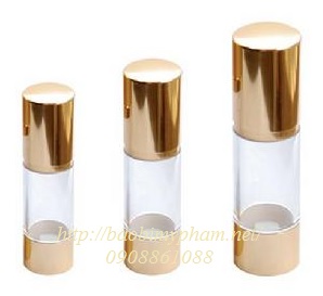Chai chân không thân trong suốt, vòi bơm kem - nắp - đế chai xi mạ vàng
