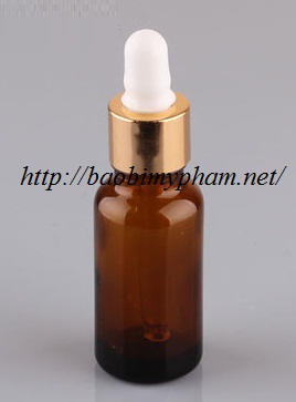 Chai nâu trong khoen xi vàng bóng núm trắng 10ml