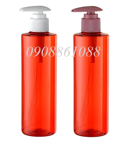 chai pet vai ngang đỏ van bơm dẹp 250ml