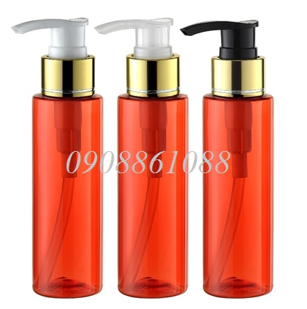 chai pet vai ngang đỏ van bơm mạ vàng 100ml