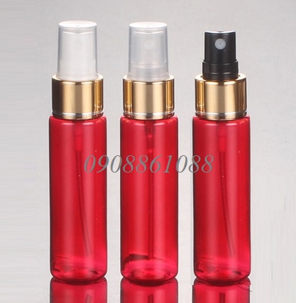 chai pet vai ngang đỏ van xịt mạ vàng 30ml