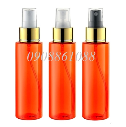 chai pet vai ngang đỏ van xịt nhôm vàng 100ml