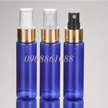 chai pet vai ngang xanh dương van xịt nhôm vàng 30ml
