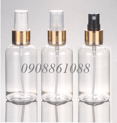 chai pet vai tròn lùn trong suốt van xịt mạ nhôm 75ml