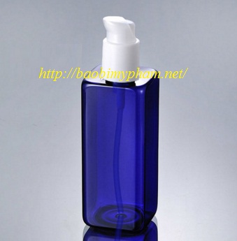 Chai Pet vuông xanh dương van kem nhựa trắng mỏ gà 250ml