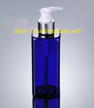 Chai Pet vuông xanh dương van sữa tắm bọc nhôm mạ bạc bóng 250ml