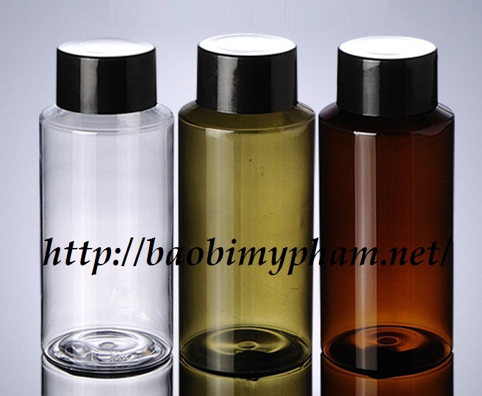 Chai Petg vai xiên . nắp nhựa đen 2 lớp - 150ml