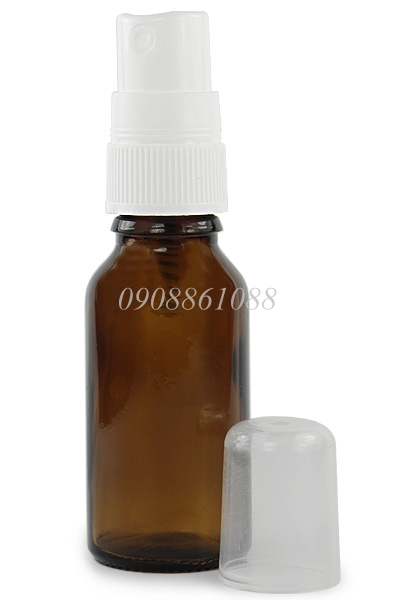 chai tinh dầu nâu van xịt trắng 15ml