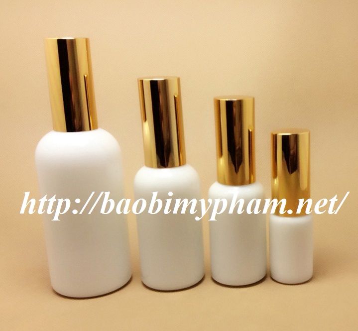 CHAI TINH DẦU SỨ TRẮNG - VAN KEM NẮP CHỤP MẠ VÀNG