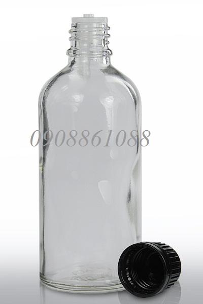 chai tinh dầu trong suốt nắp nhựa đen 100ml