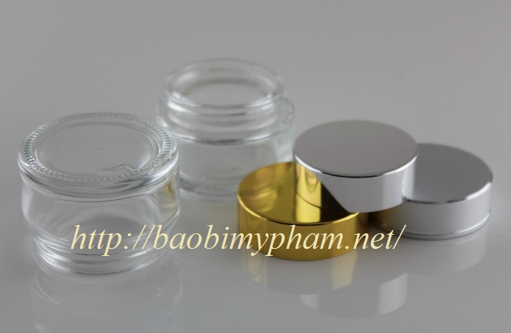 Hũ kem thủy tinh 20g tròn , trong suốt nắp xi mạ