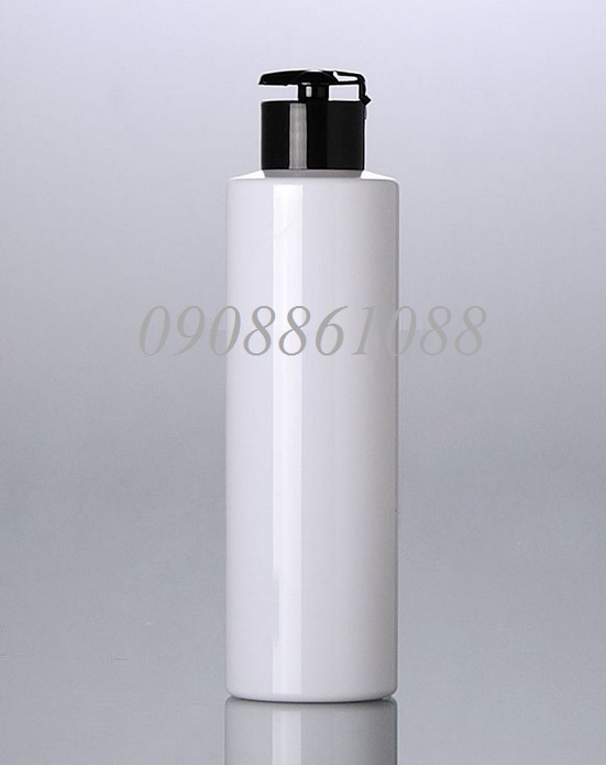 P130-FWJ38-200ml chai PET chai PET vai phẳng màu trắng trắng nắp đen đóng nút