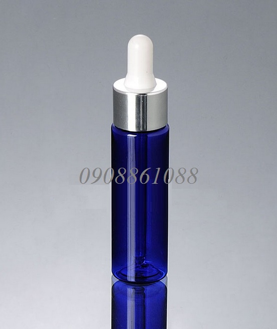 PD-FBC12-30ml-PETvai ngang xanh dương khoen bạc sáng đầu bóp cao su trắng ống nhỏ giọt