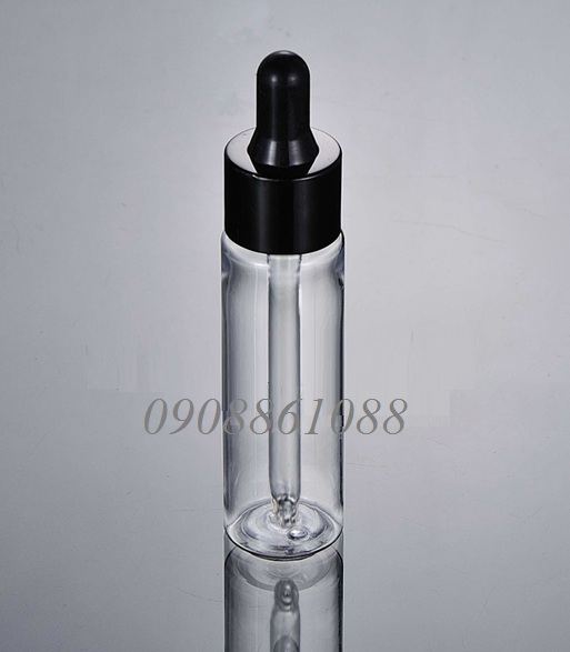 PD-FTC18-30ml Pet vai ngang trong suốt bóp nhỏ giọt nhựa đen khoen màu đen